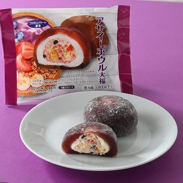 • アサイーボウル大福:新感覚和スイーツ。ヨーグルトクリーム&グラノーラ入り。