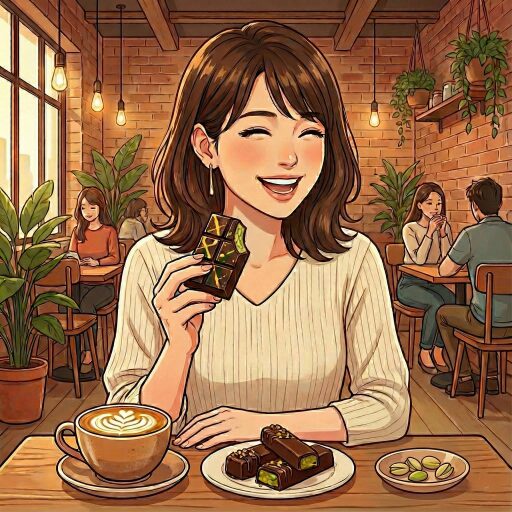 - その最大の特徴は、視覚と聴覚への訴求力です。視覚的には、チョコレートのダークブラウンと、ピスタチオの鮮烈なグリーンのコントラストが美しく、まさに「映える」スイーツの代表格です。そして聴覚的には、先述した通り、食べた瞬間の「ザクザク」という音が脳に直接響くような快感をもたらします。これは、単にナッツが入っているだけのチョコレートや、パフが入っているだけのクランチチョコとは一線を画す、未体験の食感なのです。