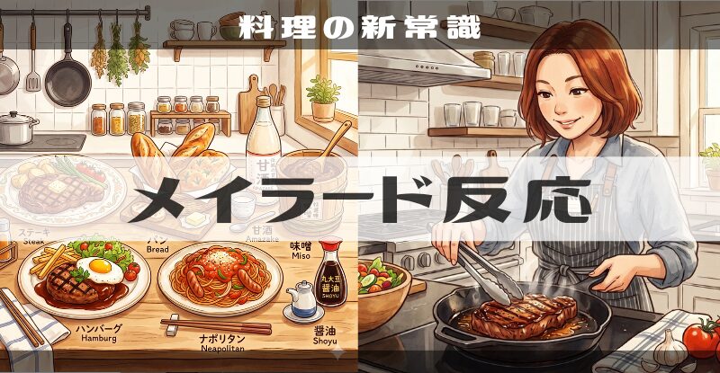 魔法の料理化学『メイラード反応』を紹介します! 最適な温度、焦げとの違い、飴色玉ねぎ、簡単にわかりやすく、例、体に悪い・ダメな理由、味噌・醤油・ケチャップ・ナポリタン・ステーキ・ひき肉・パン・甘酒のメイラード反応 などについて徹底解説します!