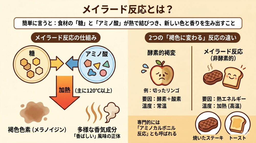 メイラード反応という、一見すると難しそうな化学反応が、実は私たちの食卓をいかに色彩豊かに、そして香り高く彩ってくれているか、感じていただけたでしょうか。