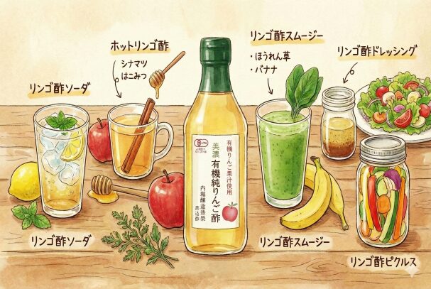リンゴ酢の魅力は、その「懐の深さ」にあります。朝の一杯のドリンクとして、あるいはお料理の隠し味として、私たちの日常にそっと寄り添いながら、確かな変化をもたらしてくれます。 「お酢は酸っぱくて苦手」という方でも、リンゴ酢の持つリンゴ由来の爽やかな甘みと、まろやかな酸味に触れれば、そのイメージはきっと変わるはずです。