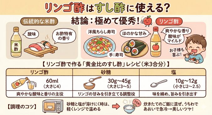 【リンゴ酢で作る「黄金比のすし酢」レシピ(米3合分)】