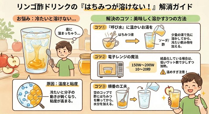 リンゴ酢ドリンクのはちみつが溶けない?