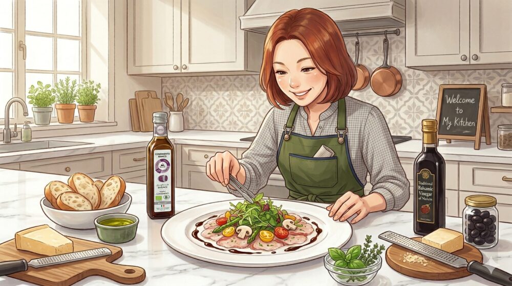 イタリアの職人が何十年も樽を移し替え、ぶどうの命を守り抜いてきたその物語は、単なる知識としてだけでなく、皆さんがキッチンで蓋を開けた瞬間に、豊かな香りとともに感じられるはずです。忙しい日々の食事作りが、バルサミコ酢という「時間の魔法」を借りることで、自分をいたわり、家族を喜ばせる「丁寧な時間」へと変わっていく。そんな瞬間を、ぜひ大切に味わってください。