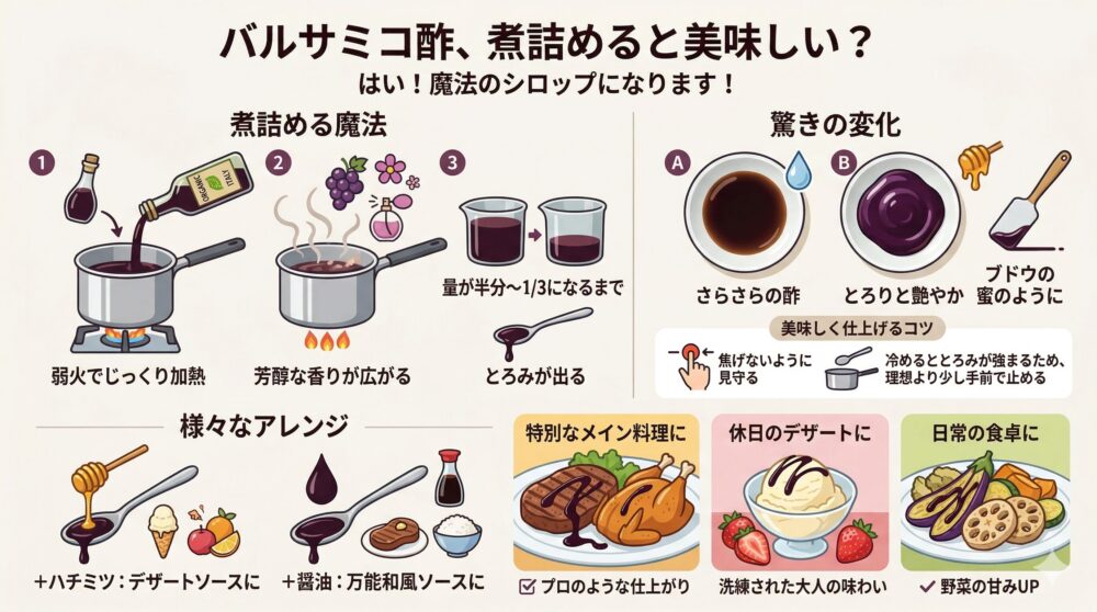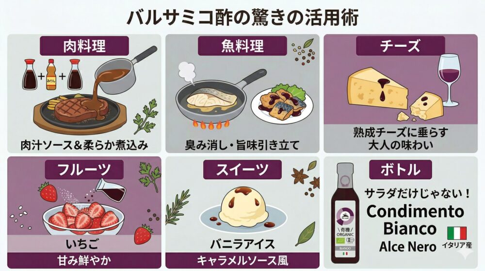 「伝統的な使い方」に縛られず、今ある調味料とバルサミコ酢を組み合わせてみる。そんなちょっとした冒険が、毎日のキッチンをワクワクする場所に変えてくれるはずです。