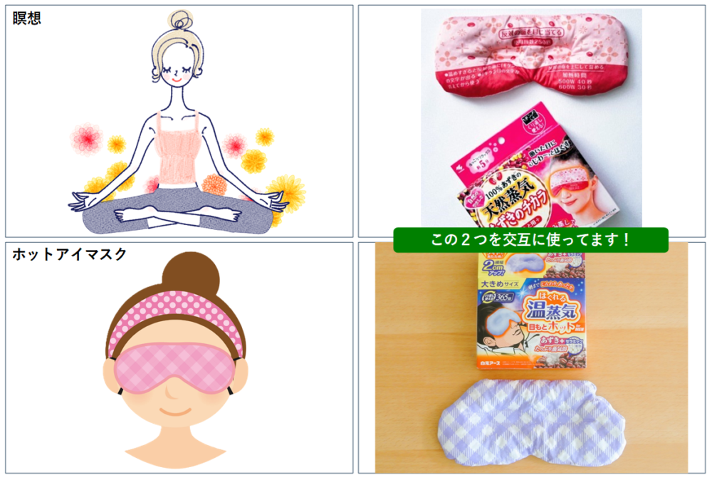 目元を温め視界を遮断することで副交感神経が優位になり、寝つきや睡眠の質が改善されることが多いです - ドライアイ対策