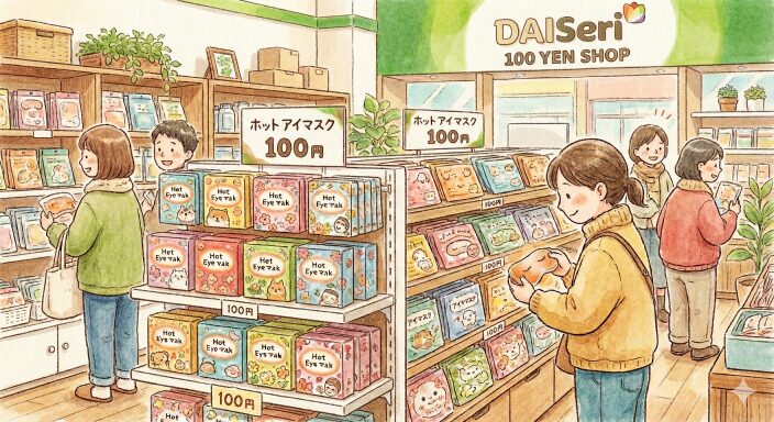 驚くべきことに、100円ショップでも高品質なホットアイマスクが手に入ります。「まずは試してみたい」という初心者の方に最適です。