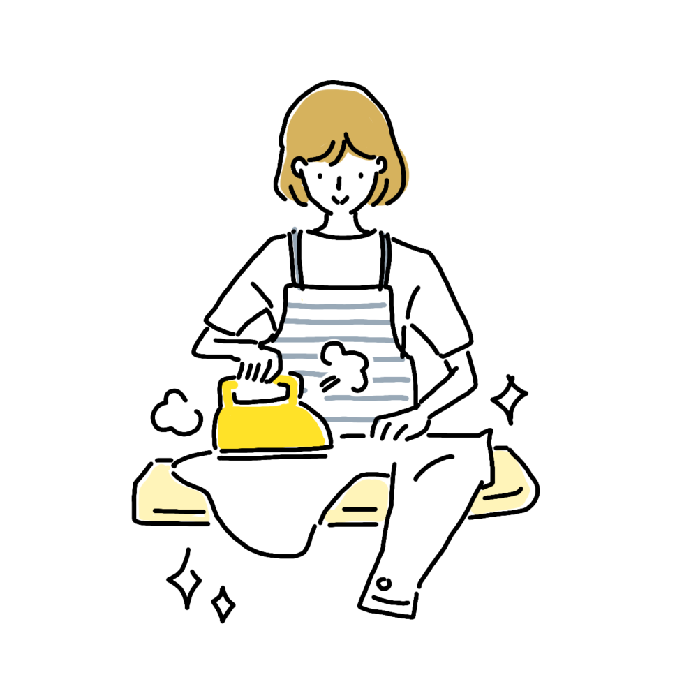 - 「スタンド型」は立ったままや 椅子に座ってアイロンがけができるもので、何段階かに高さが調節できるものが多いです。折りたたみ式のものにすれば、収納も便利です。椅子の高さや身長に合わせて楽にアイロンがけができるので、アイロンがけする衣類が多い方にオススメです。