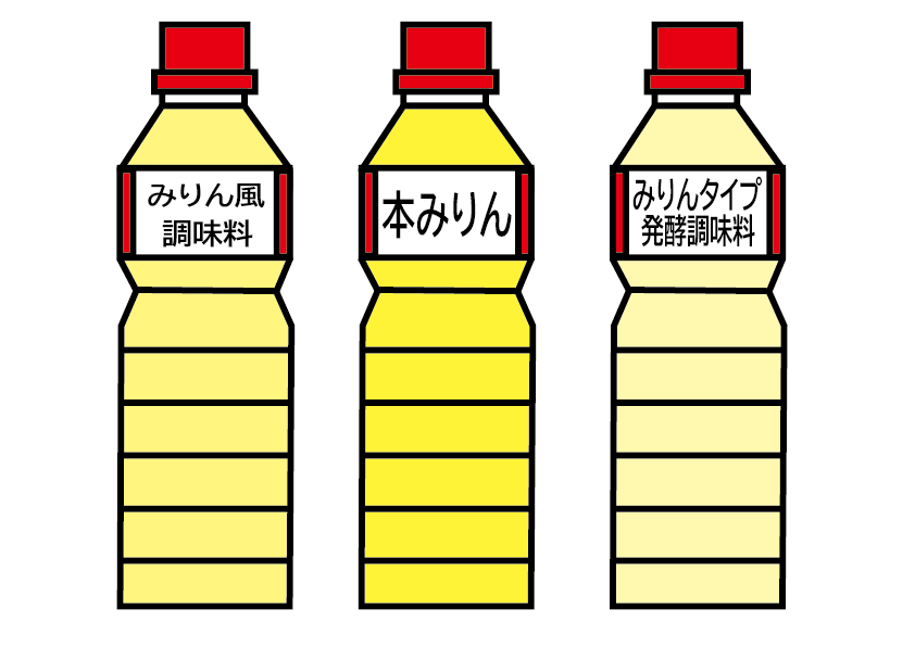 でも、スーパーに並んでる「みりん」はいろんな種類があって、よく見ると「みりん風調味料」とか「本みりん」とか けっこう違いがあるんですよー