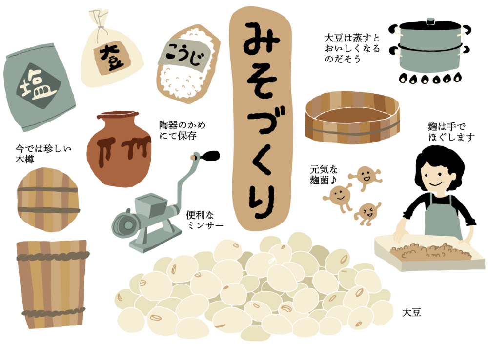 作り方もシンプルで、「大豆を煮て」「つぶして」「塩と麹を混ぜて熟成させる」だけ。