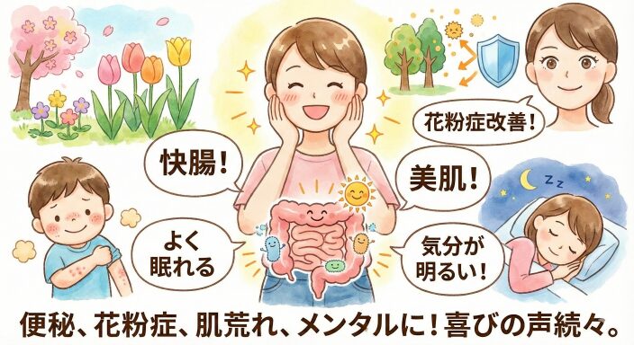「肌は内臓の鏡」という言葉がある通り、腸内環境の悪化はすぐに肌荒れとして現れます。腸内の腐敗物質を減らし、血流を良くすることで、高級な化粧品以上に肌の輝きを引き出せると実感されています。