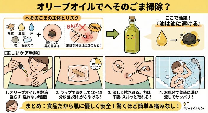 【オリーブオイルを使った正しいおへそケア】