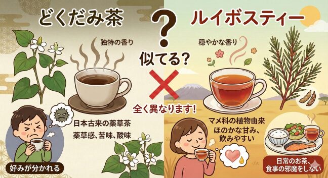 健康茶というジャンルで一括りにされることが多いため、「ルイボスティーもあの独特の臭いがあるのでは?」と、どくだみ茶と混同されることがありますが、