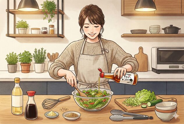 - 自家製中華ドレッシング: ポン酢大さじ2に対し、ごま油大さじ1を混ぜるだけ。豚しゃぶサラダや海藻サラダに最適です。