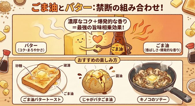 ごま油とバター。中華と洋風、植物性と動物性。一見すると水と油のような関係に見えますが、実は「禁断の組み合わせ」と呼ばれるほど相性が抜群です。