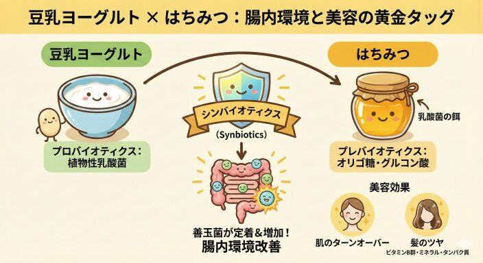 「豆乳ヨーグルトにはちみつ」という組み合わせ。これは単に美味しいだけでなく、腸内環境を劇的に改善する可能性を秘めた「黄金のタッグ」です。