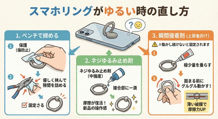リングが自立しなくなり、スタンドとしての機能を果たせなくなると、買い替えを検討したくなるものです。しかし、少しの手間を加えるだけで、お気に入りのリングの機能を取り戻すことができるかもしれません。